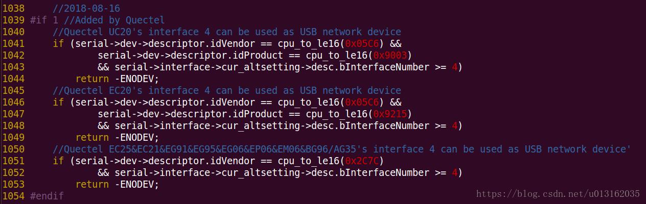这里其实只需要{ USB_DEVICE(0x05C6, 0x9215) }, /* Quectel EC20 */ 这一项,其他是无关紧要的,可以不放进去。option_ids[]就是一usb serial的设备pid,vid表。