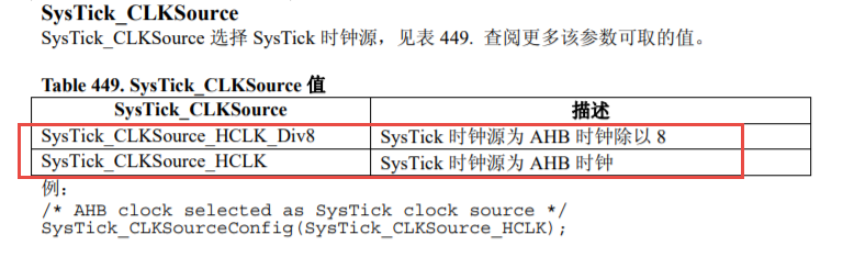 //SYSTICK的时钟需要通过时钟树配置,可选为HCLK系统时钟,也可8分频HCLK_DIV8系统时钟