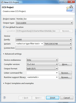 4.1 新建一个 CCS 文件“FILE” ---> “NEW” -->“CCS Project”,在弹出的对话框中做如下选择