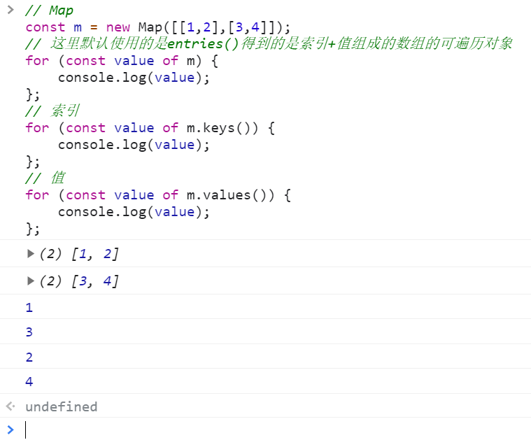 - entries() 得到的是索引+值组成的数组的可遍历对象。
