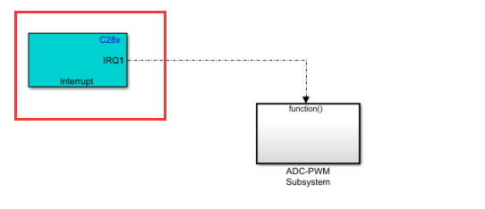 ADC采集到的模拟电压控制PWM波形的占空比(周期不发生改变)。当处理器收到ADC中断(ADCINT)时,触发中断服务程序(ISR)并执行子系统(ADC-PWM子系统)。ADC-PWM子系统由ADC与EPWM模块组成,该模块驱动PWM模块的占空比输入端口。PWM模块配置为触发ADC模块的转换开始(SOC)。