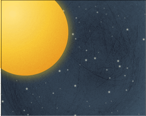 17、将绘制好的太阳编组,移至左上角,再用类似方法绘制一个蓝色地球,图形就绘制完成了。