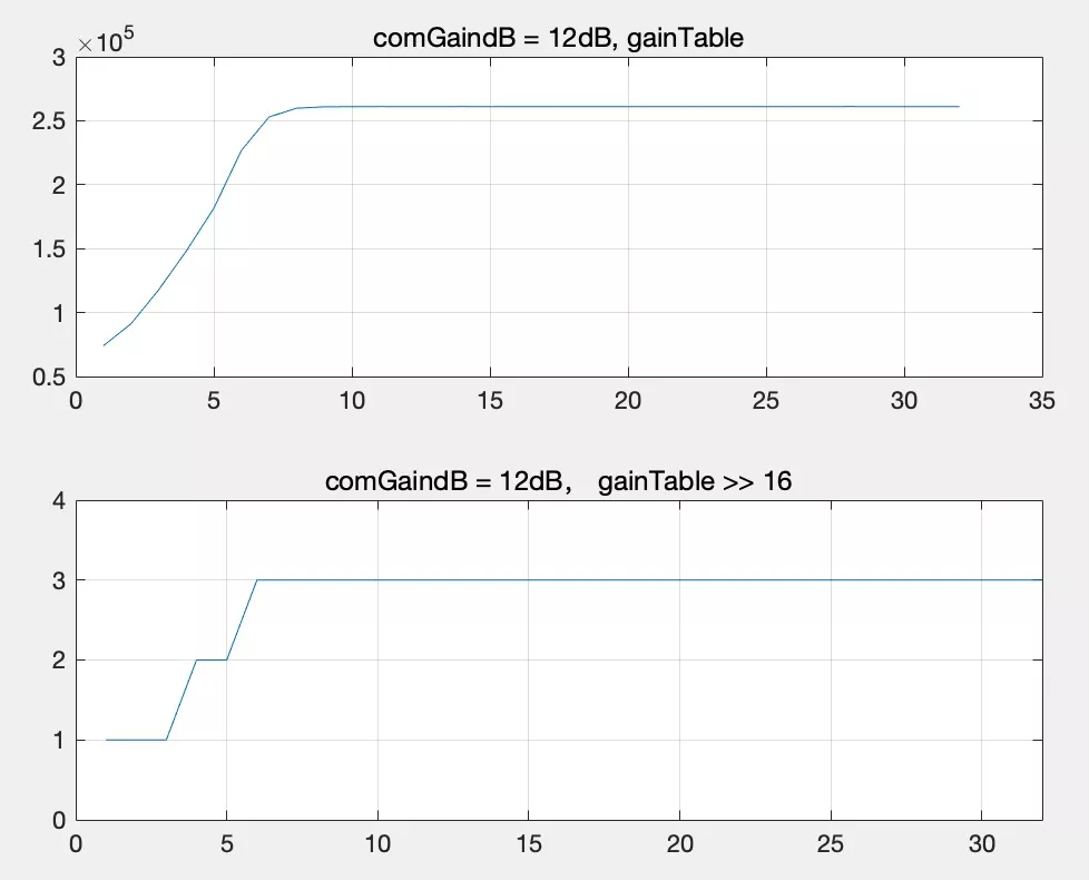 每次以 1 的固定步长补偿输入信号,gainTableIdx = 0 表示放大倍数为 1 倍,即什么也不做。