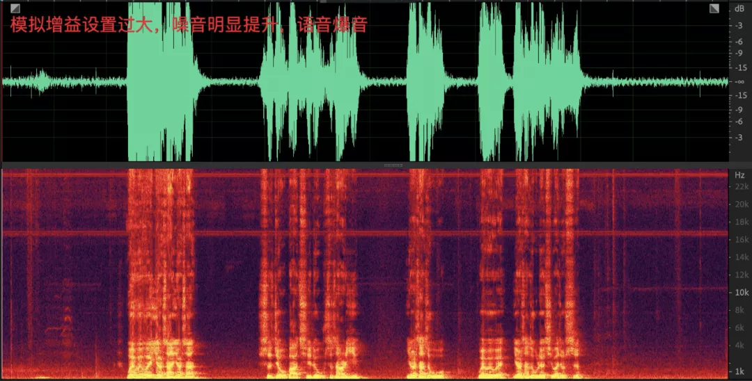 - 采集音量过大会导致噪声被明显提升,人声爆音;