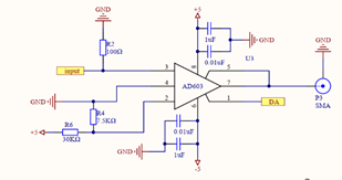 6:AD603的输人电阻为100欧姆,信号输人时应考虑阻抗匹配。