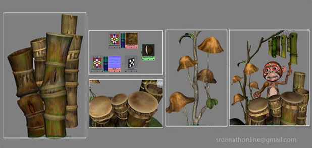 用一个圆柱体或者四边形创建竹子,鼓,蘑菇等等(图03)。