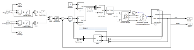 即蓄电池模型,通过控制器和飞轮模型连接,同时也是通过控制器进行充放电的控制操作。