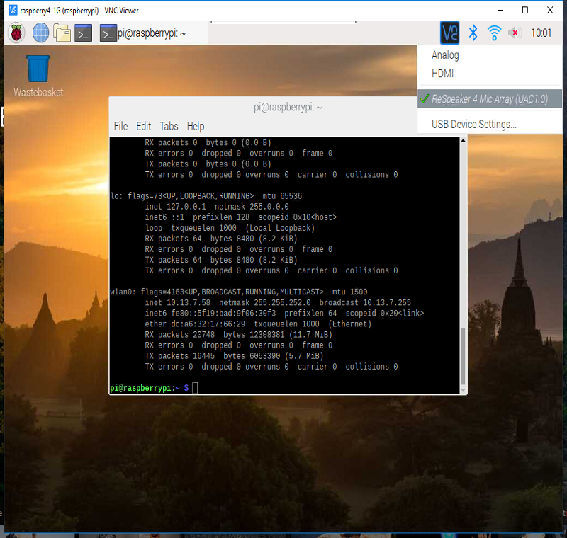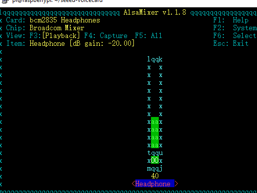 用F6选择seeed-4mic的声卡设备,调节音量。