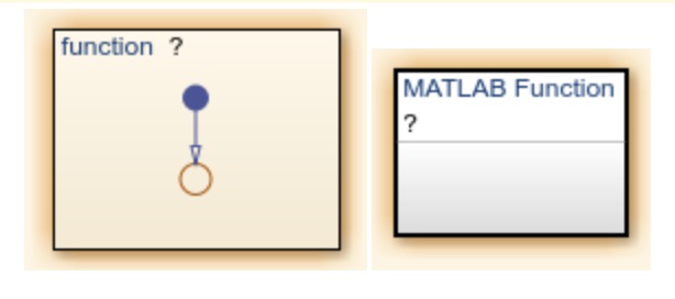 但是也可以手动修改,基本只需要修改其方法名就可以了。下面的graphical function和matlab function分别是使用状态机相关连线以及连接点来搭建相应的function和使用matlab函数来实现相应的方法。如下图所示:
