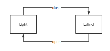 事件则是会导致状态发生变化的一个动作,在上面的图中,open和close就是事件,分别表示打开和关闭开关。