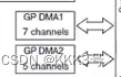 它有两个控制器,DMA1和DMA2,其中DMA1有7个通道,DMA2有5个通道,通道可以连外设。