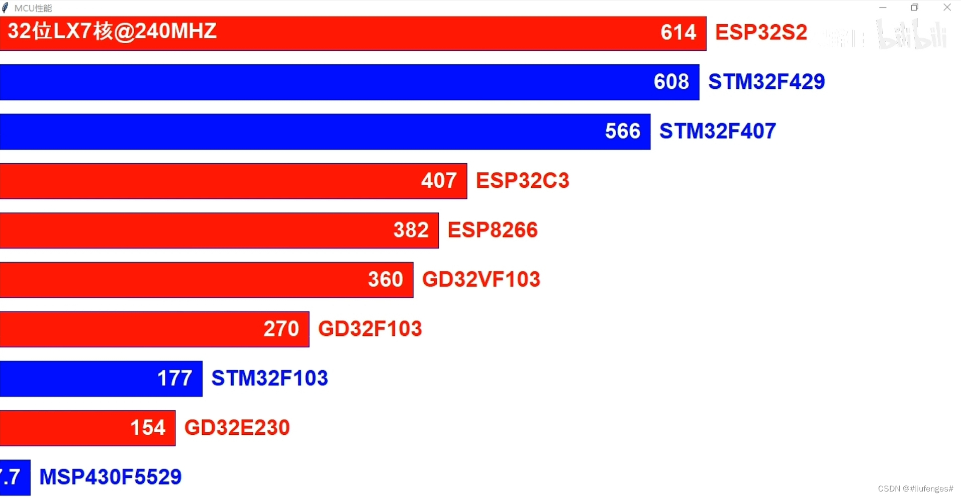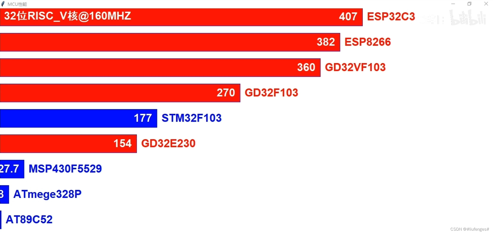 光凭一句“高性能”可能对其性能还是没有什么概念。下面是一个常见单片机的性能分数对照表,可供参考。