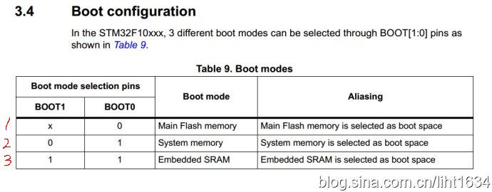 1、STM32一共有三种启动模式,相关的配置说明如下