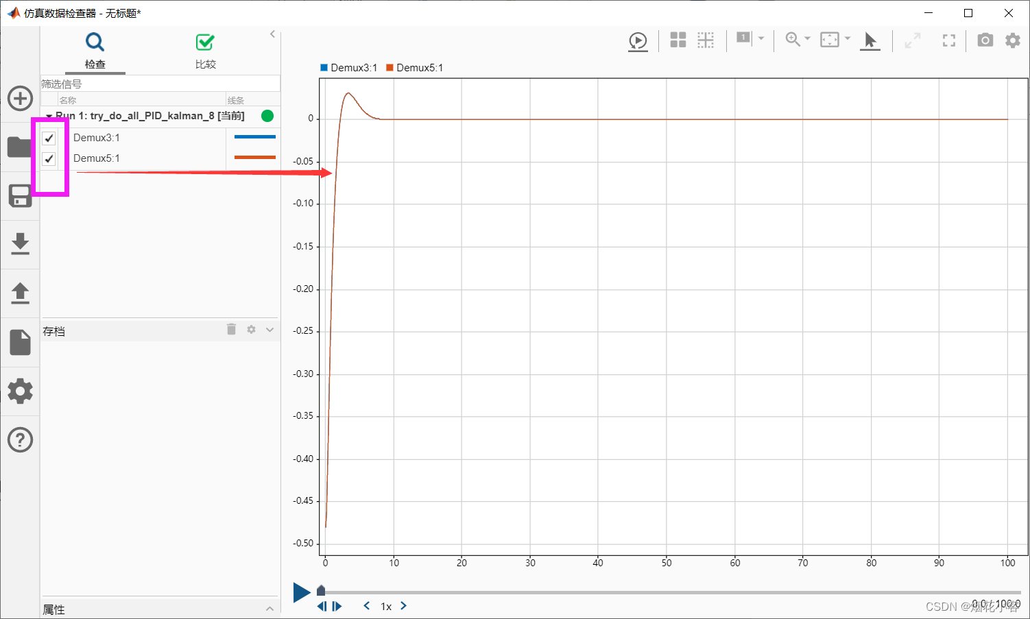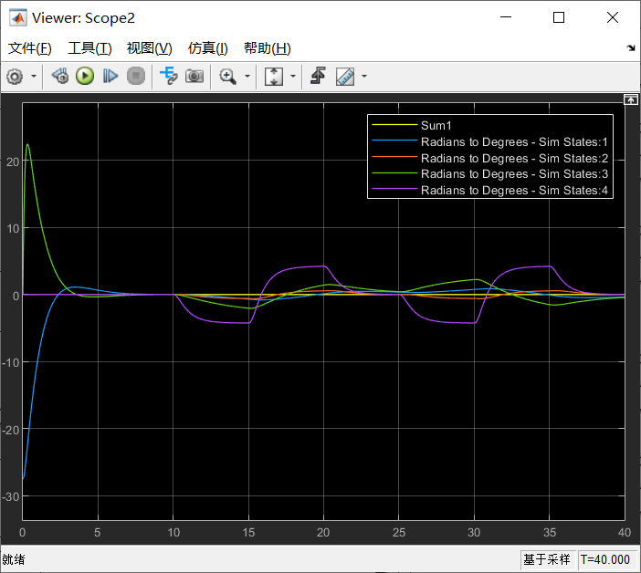 那么上图所示的示波器25采样时间T=0.1,而系统还是0.005的执行