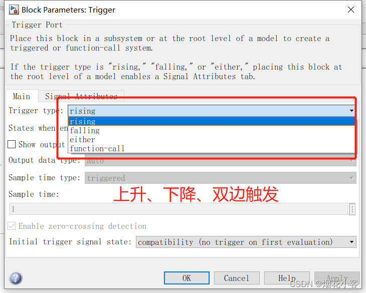 而触发子系统只有设置上升、下降、双边触发.....的时候,u才会变一下然后保持