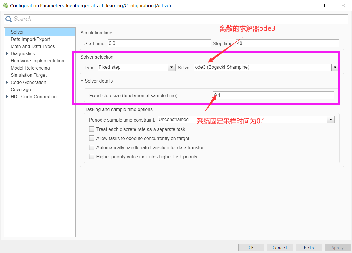 设置部分参考:Simulink求解器的使用 - 云+社区 - 腾讯云
