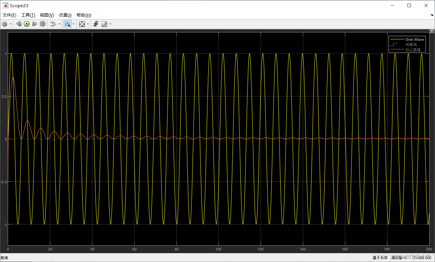 以上就是着急康乃馨最近收集整理的关于simulink学习笔记1.显示某点的值2.在有很多scope时,找不到打开的是哪一个scope,点击如图所示的标志3.保存图片4.高、低通滤波器的实现5.如何将两个不同界面的示波器画面链接到一起6.显示实时运行数值7.显示矩阵大小(即信号维度)8.系统的设置步长和scope的设置步长有什么区别9.S-Function的作用10.方差在matlab的表示11.连续模型转离散(一键生成小工具)12.simulink离散和连续的关系13.离散的状态空间方程14.子模块扩展开15.延时16.关于采样时的全部内容,更多相关simulink学习笔记1.显示某点内容请搜索靠谱客的其他文章。