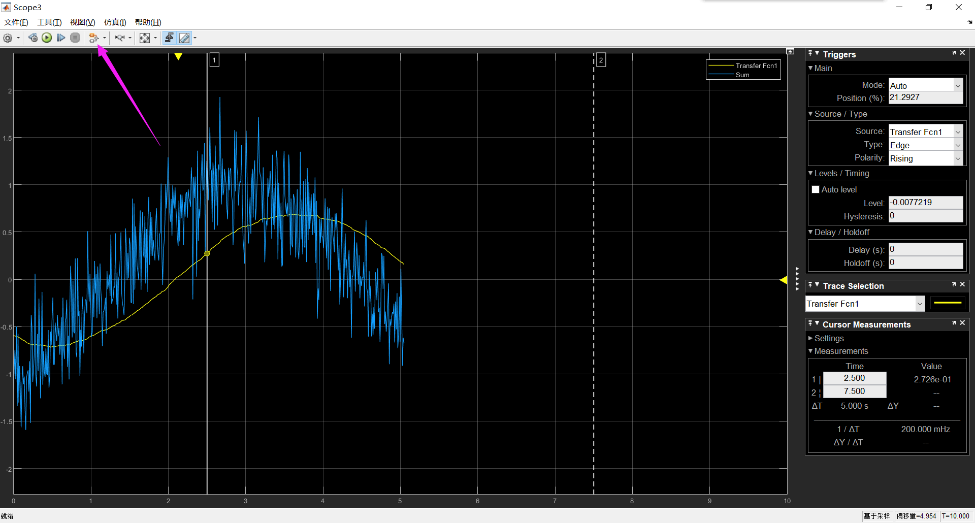 并且这个示波器的名字叫“Scope2”