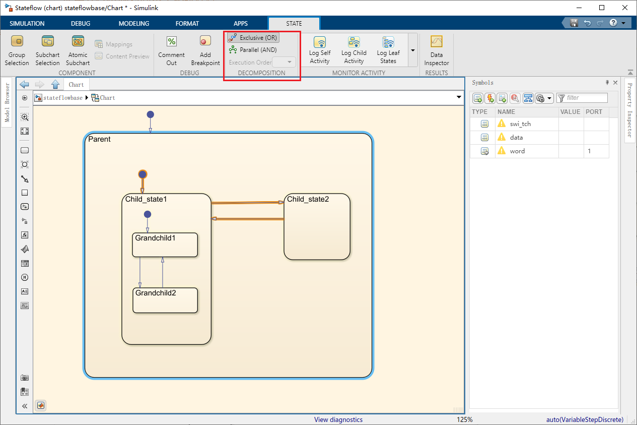 以上就是顺心纸飞机最近收集整理的关于Simulink学习——stateflow快速入门之层次结构、互斥及并行的全部内容,更多相关Simulink学习——stateflow快速入门之层次结构、互斥及并行内容请搜索靠谱客的其他文章。