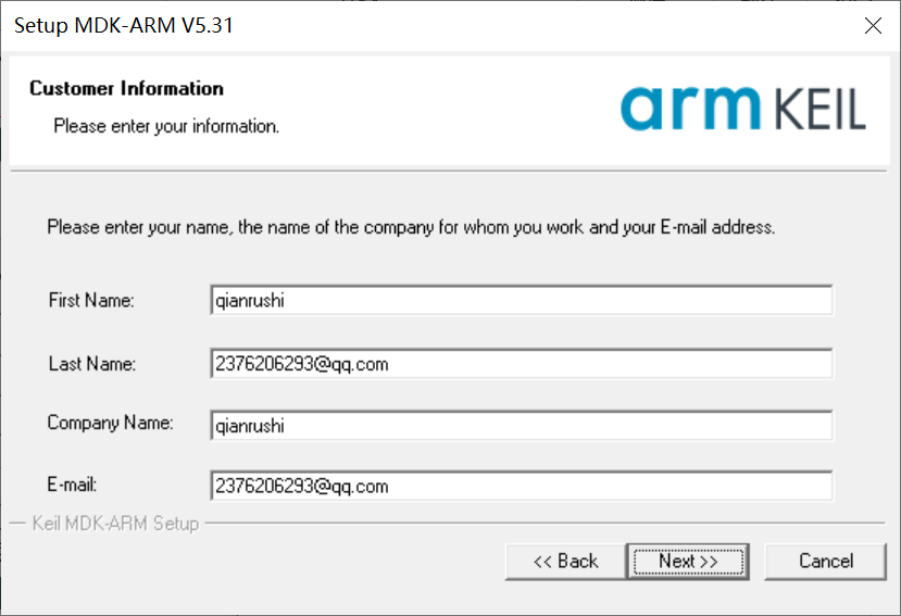 用英文填写此处信息,然后点击Next,等待安装完成