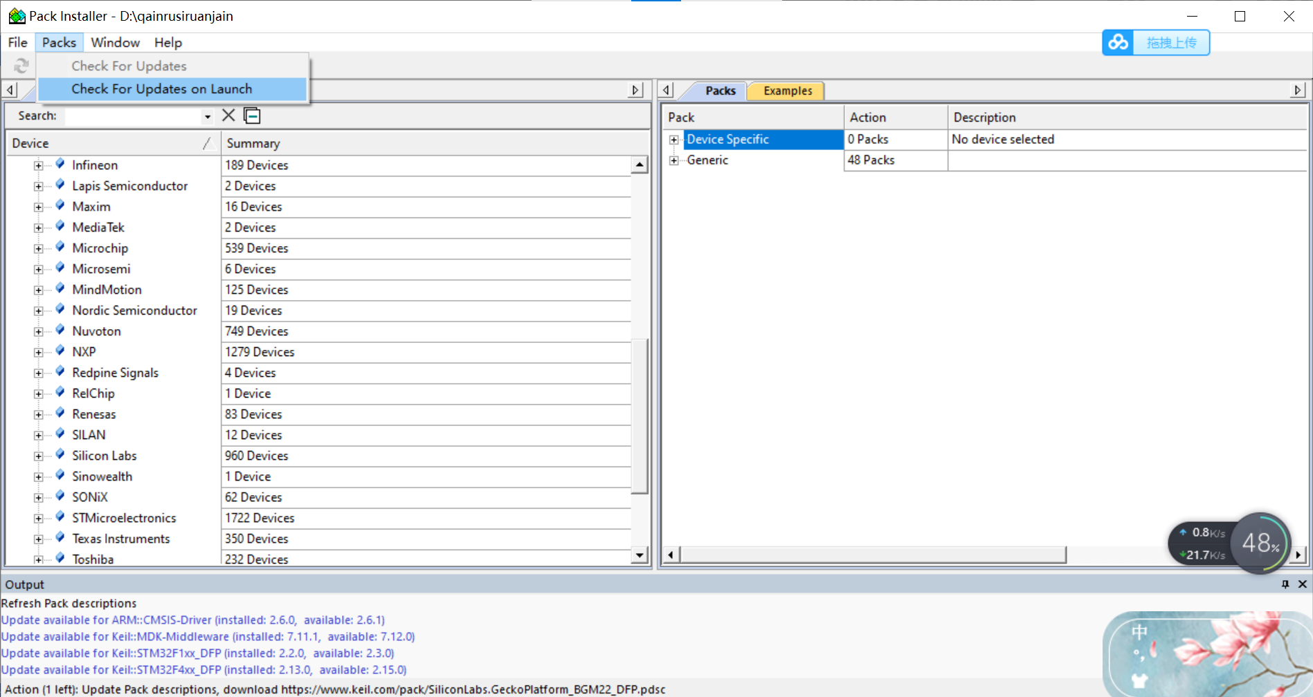 出现这个界面后,选择左上角Packs,把Check For Updates on launch的勾去掉,关闭窗口,忽略提示。
