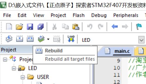 图中的Rebuild选项即为编译选项,两个向下的箭头代表编译全部文件,我们点击编译全部。