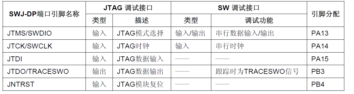 STM32F10XXX 芯片内部的JTAG引脚已带有内部上拉和下拉: