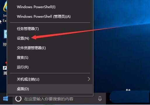 2、右键点击开始按钮,在弹出菜单中选择“设置”菜单项