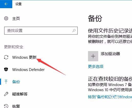 4、在打开的更新和安全设置窗口中,点击左侧边栏的“Windows更新”菜单项