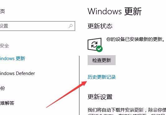 5、这时在右侧打开的窗口中点击“历史更新记录”快捷链接