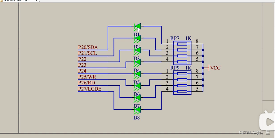 此图为单片机中八个LED灯的连接图