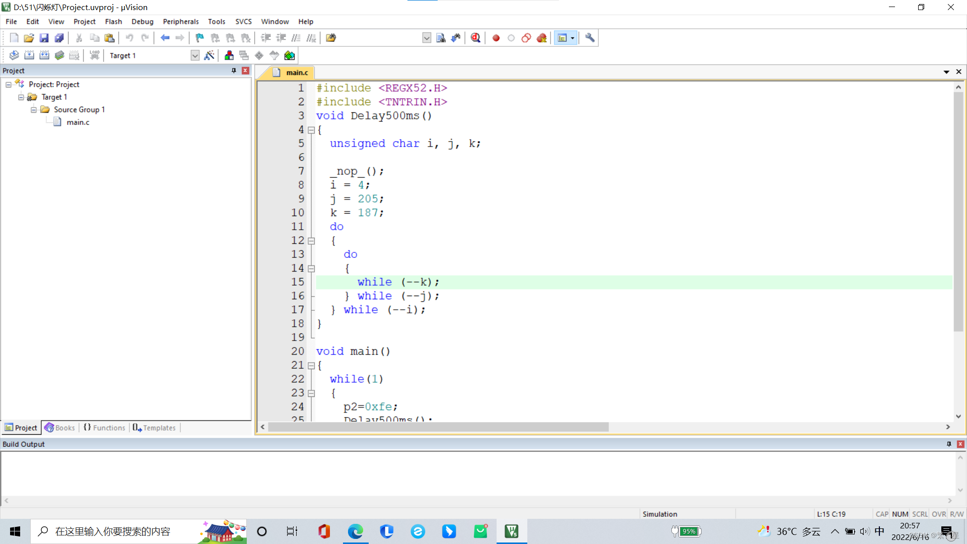 但是由于单片机频率很快,闪烁较快会被误认为一直亮,需要在此基础上加上延时的语句。
