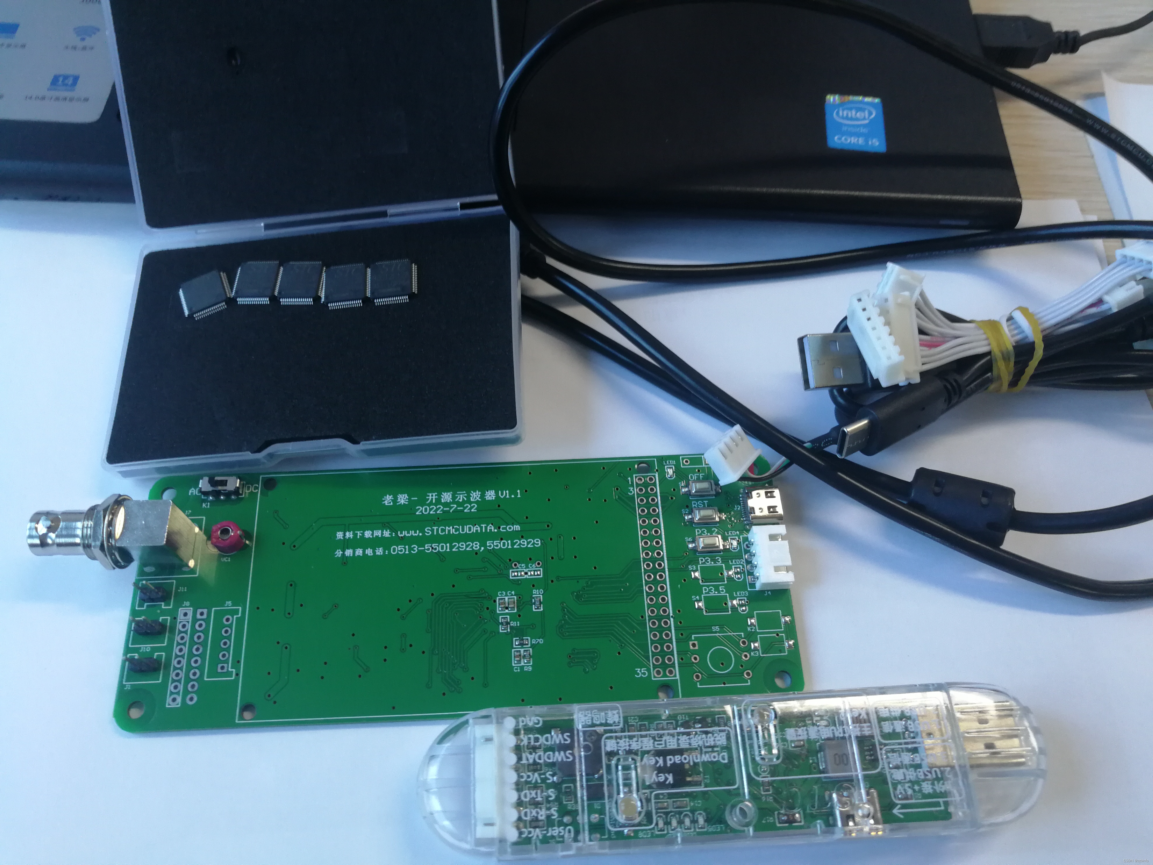 看到网友都在申请试用STC的32位8051芯片,由于某些众所周知的因素影响,工作闲暇时光比较多,我也就凑热闹申请了样片试用,由于还没把样片应用于实际项目,在此先记录一下赠送的老梁开源示波器的烧录和试用情况。