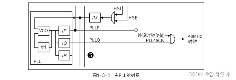 因此必须使用主 PLL 倍频来实现。主 PLL 的树图如图 1-3-2 所示,我们需要为主 PLL 配置以下