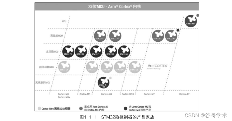 图 1-1-1 展示了 STM32 微控制器的产品家族。