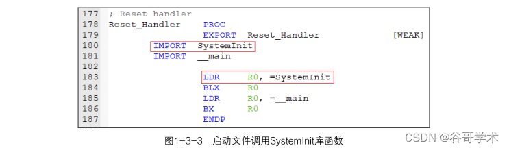 用 SystemInit 库函数的具体实现如图 1-3-3 所示。
