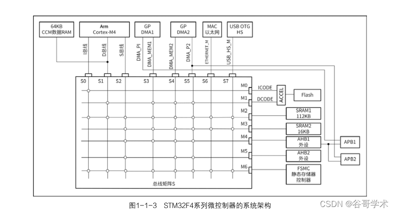 STM32F4 系列微控制器在片上集成了各种功能部件,各部件之间通过总线相连。这些功能