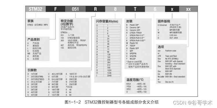 适的 STM32 微控制器来完成项目设计。STM32 微控制器型号的各部分含义介绍如图 1-1-2