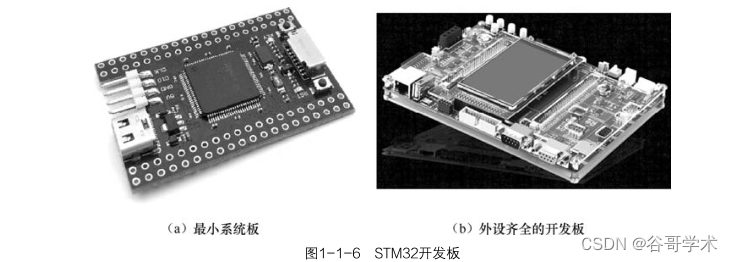 图 1-1-6(a)和图 1-1-6(b)所示。上述两种开发板各有优缺点:从价格上来说,最小系统