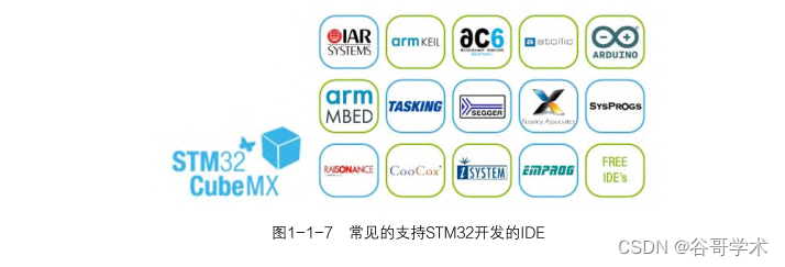 源程序,最后导入 IDE 中进行编译、调试与下载。常见的支持 STM32 开发的 IDE 如图 1-1-7