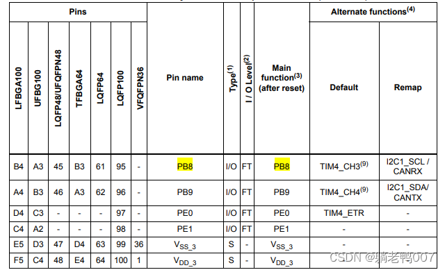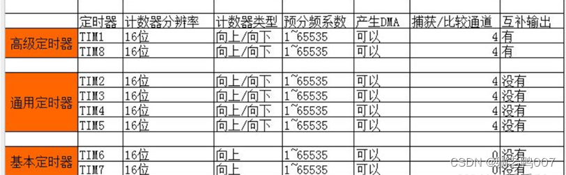 | 定时器/计数器 | 4个16bit定时器/计数器,分别为TIM1、TIM2、TIM3、TIM4,TIM1带死区插入,常用于产生PWM控制电机 |