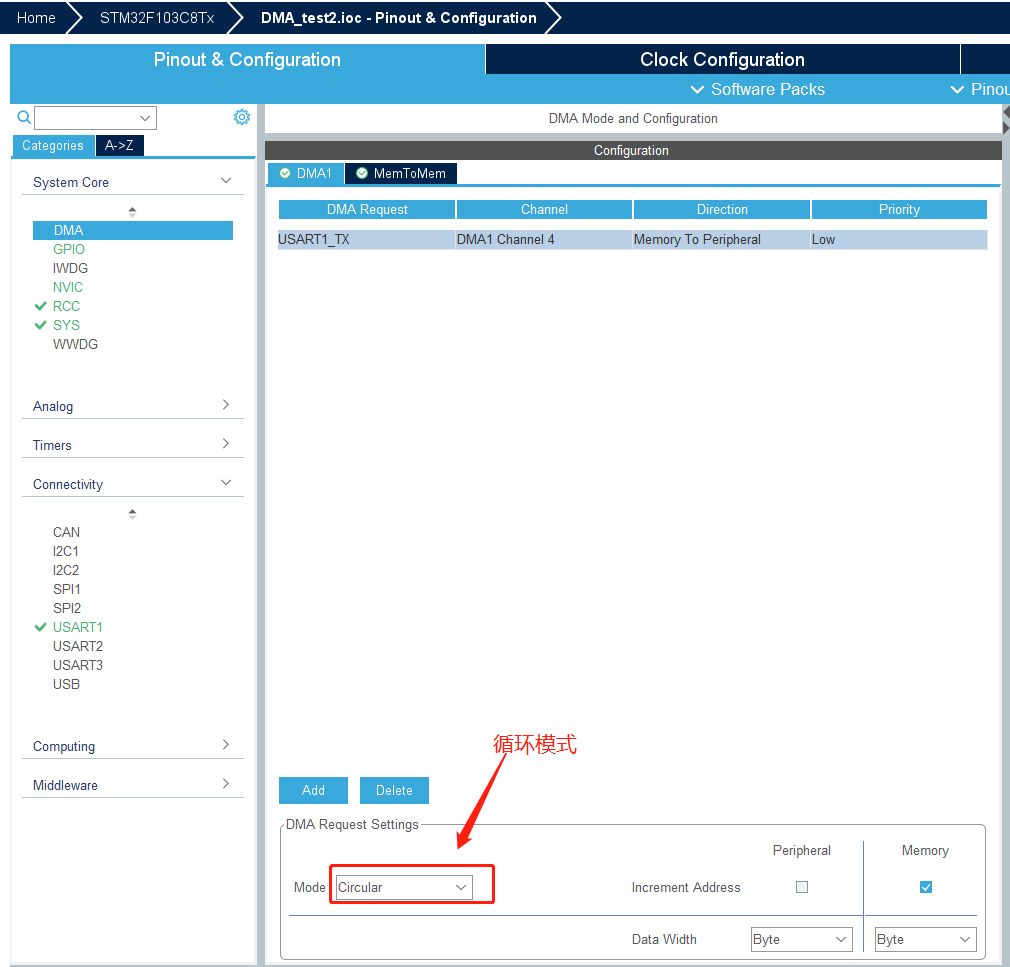 HAL_UART_Transmit(&huart1,temp,1,0xffff);