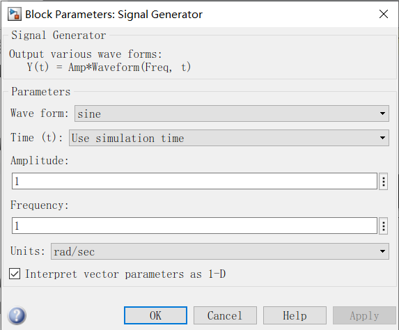 6、双击signal generator进入信号源设置界面,设置参数如图所示。