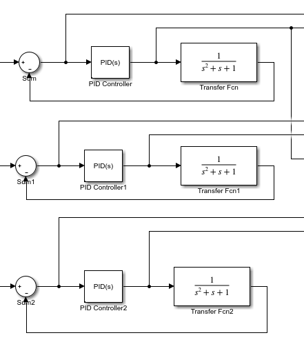 这一部分就是三个独立的控制系统,自上而下依次为 P控制系统 PI控制系统 PID控制系统,每个控制系统都将系统的误差和经过控制器后的输入引出到显示部分的显示模块,用于分析系统性能,本文随意取得传递函数如图所示,大家可以自主根据需要修改,各控制器参数设定如下(大家可以按照自己的需要修改,本文参数仅作示例):