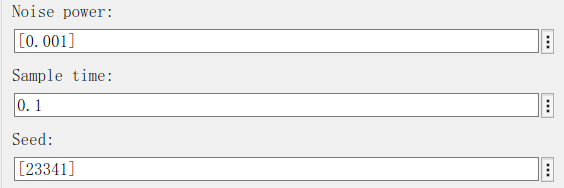 这一部分其实很简单,就是进行输入的选择,当手控开关(Manual Switch)(注:本文从此处开始提到的英文名字对应图中唯一模块,如此处Manual Switch就是指输入部分的手控开关,在输出部分也有6个手控开关,我会根据流程图的标注把他们分别记作Manual Switch1~Manual Switch6)打到上面的时候选择的出入信号是一个常量,此处举例为20,当手控开关打到下面的时候,选择的出入信号是常量+噪声干扰,此处还有显示模块(Scope4),用于查看噪声的波形,在simu link中双击Scope4可以进行噪声参数的设定,本例设定的为较小的噪声,本例中的波形参数和图像如下: