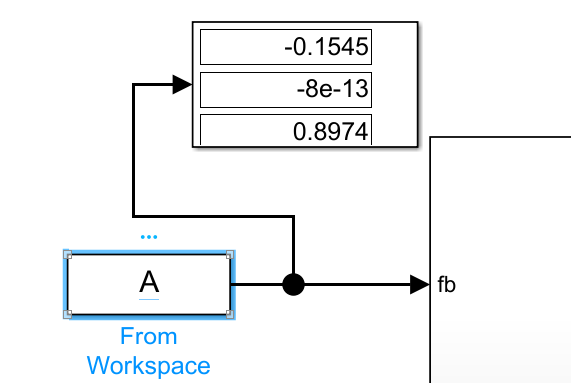 3. 在simulink中使用【From Workspace 】模块,设置中将数据改为A,即可将带有时间序号的数据导入模型中进行计算。