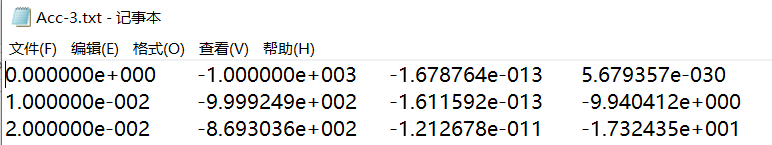 得到变量A,如下图所示,依旧第一类为时间序号,其余是加速度数据。