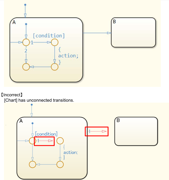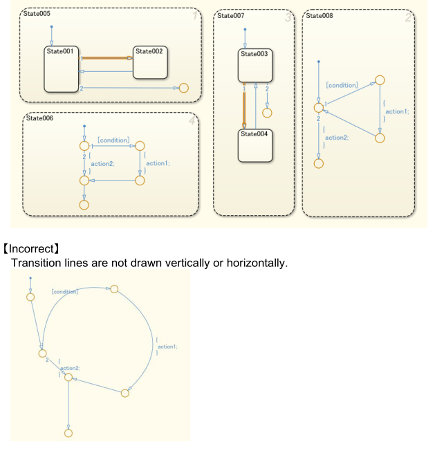 【正确】注:该示例用于流程图,但该规则也适用于状态转换。