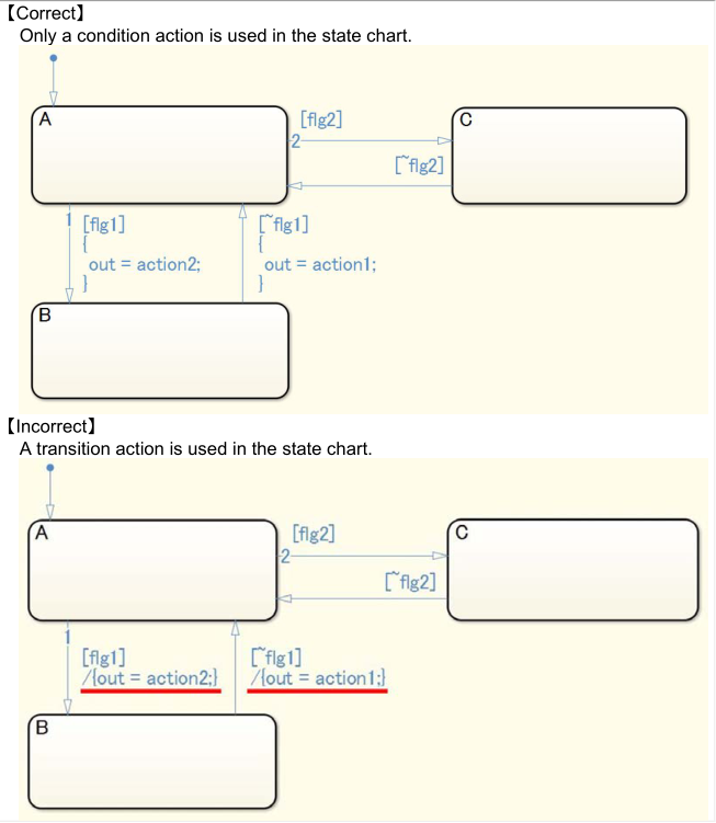 jc_0762: 避免同一状态机同时使用 state action 和 flow chart