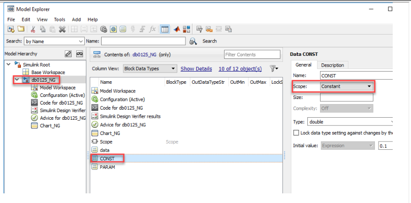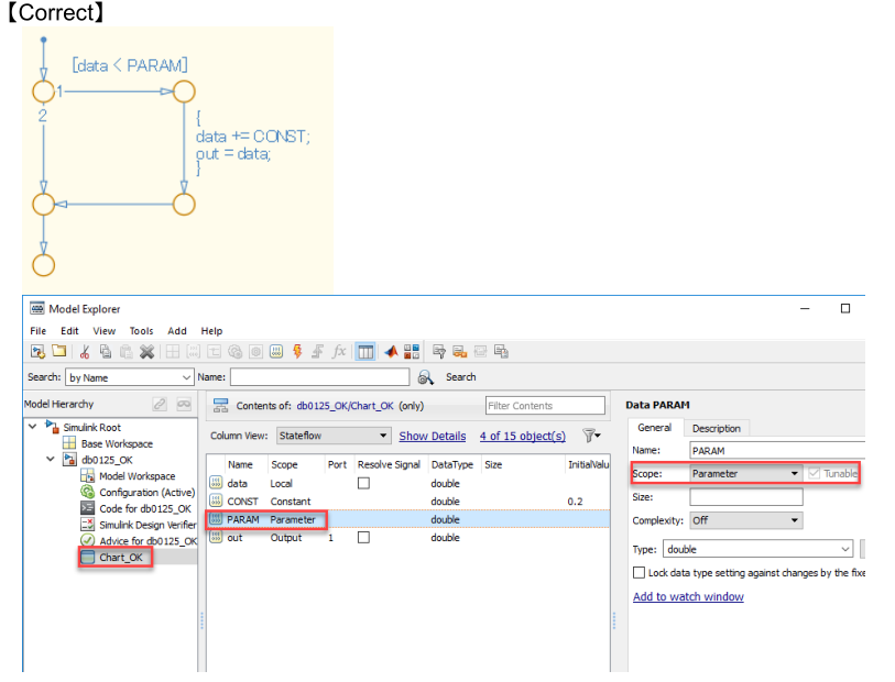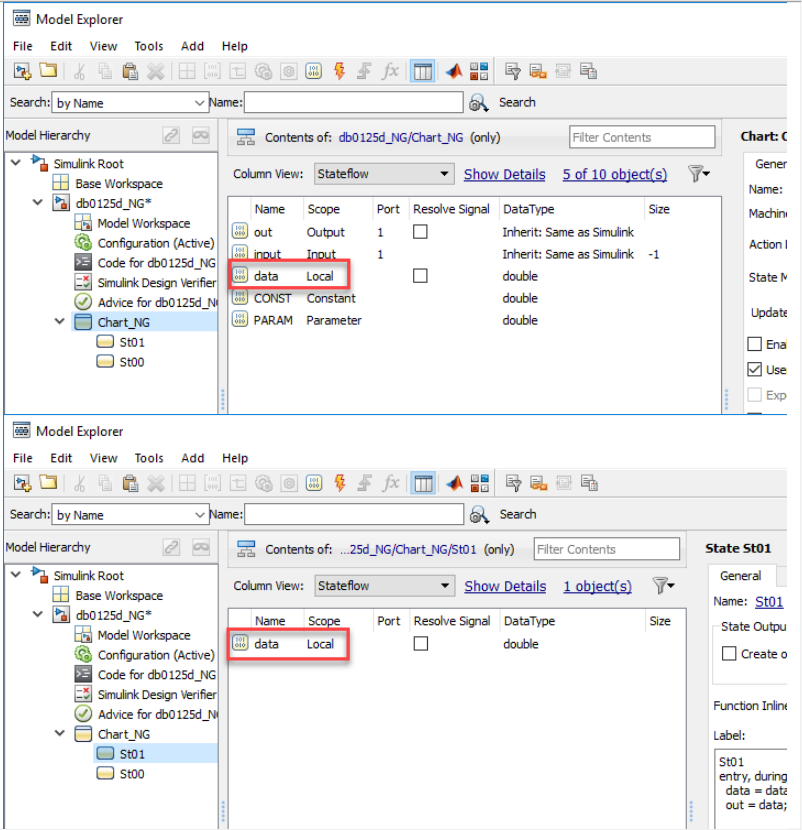 a:单一[chart]中的状态、数据(inputs and outputs, local data, constants, parameters, data store memory)或事件名称不得使用相同的名称。